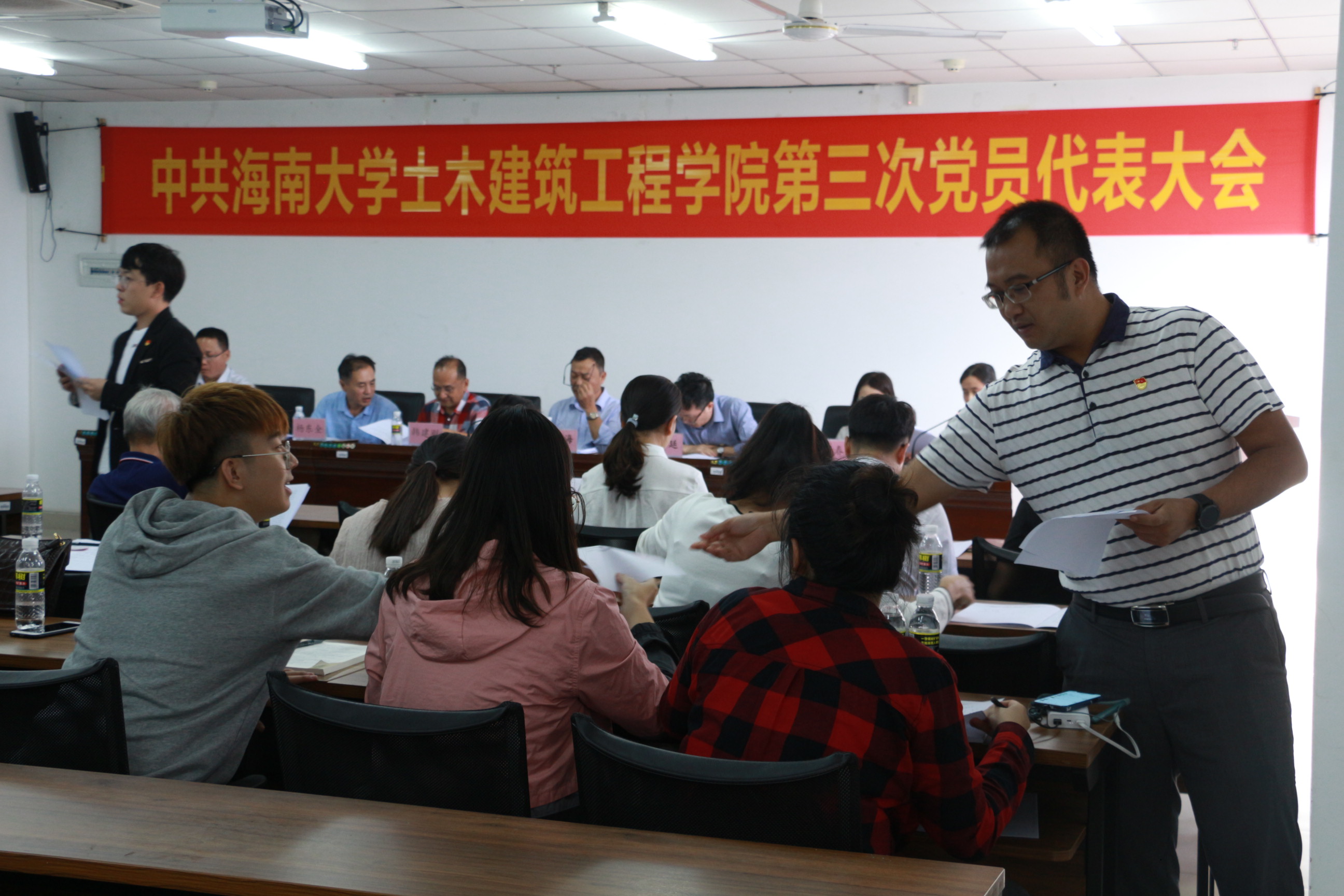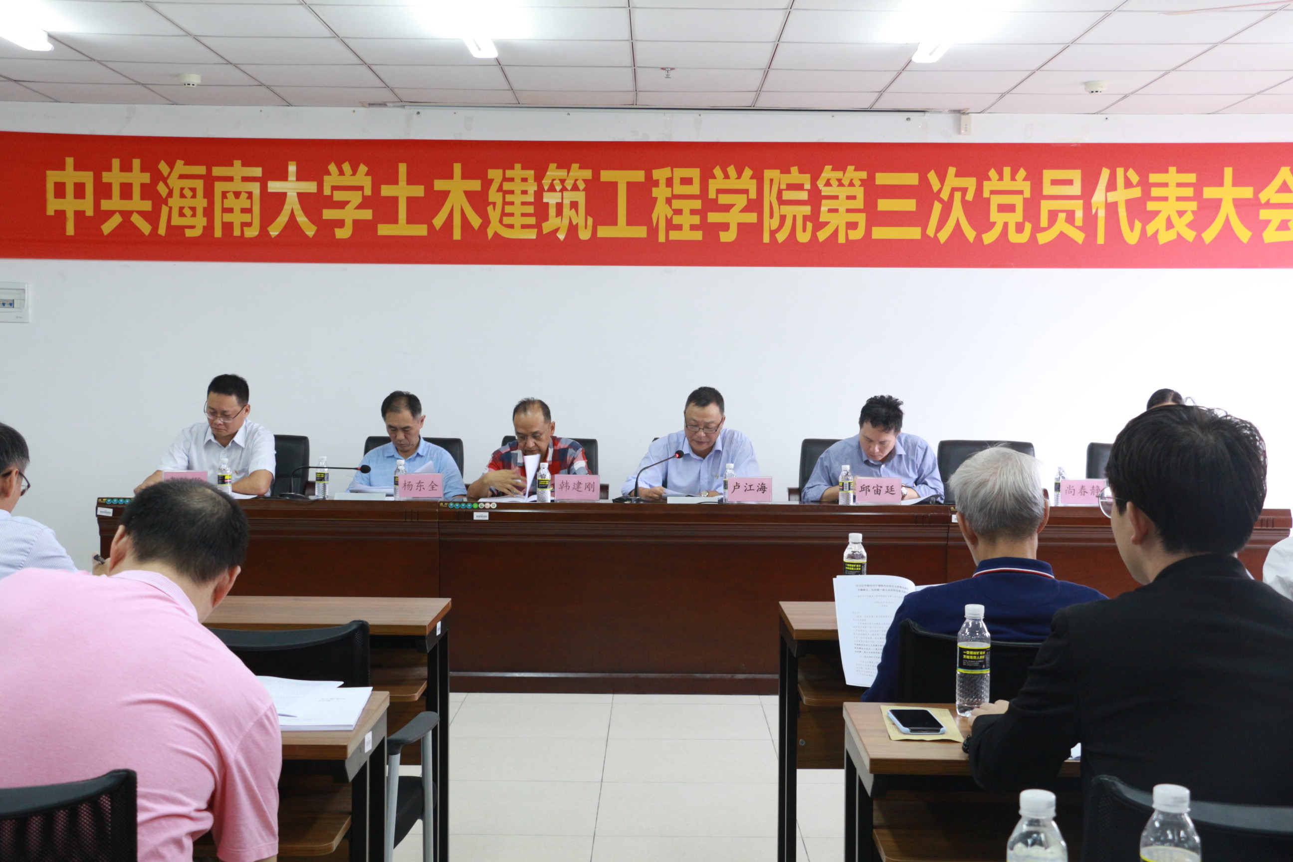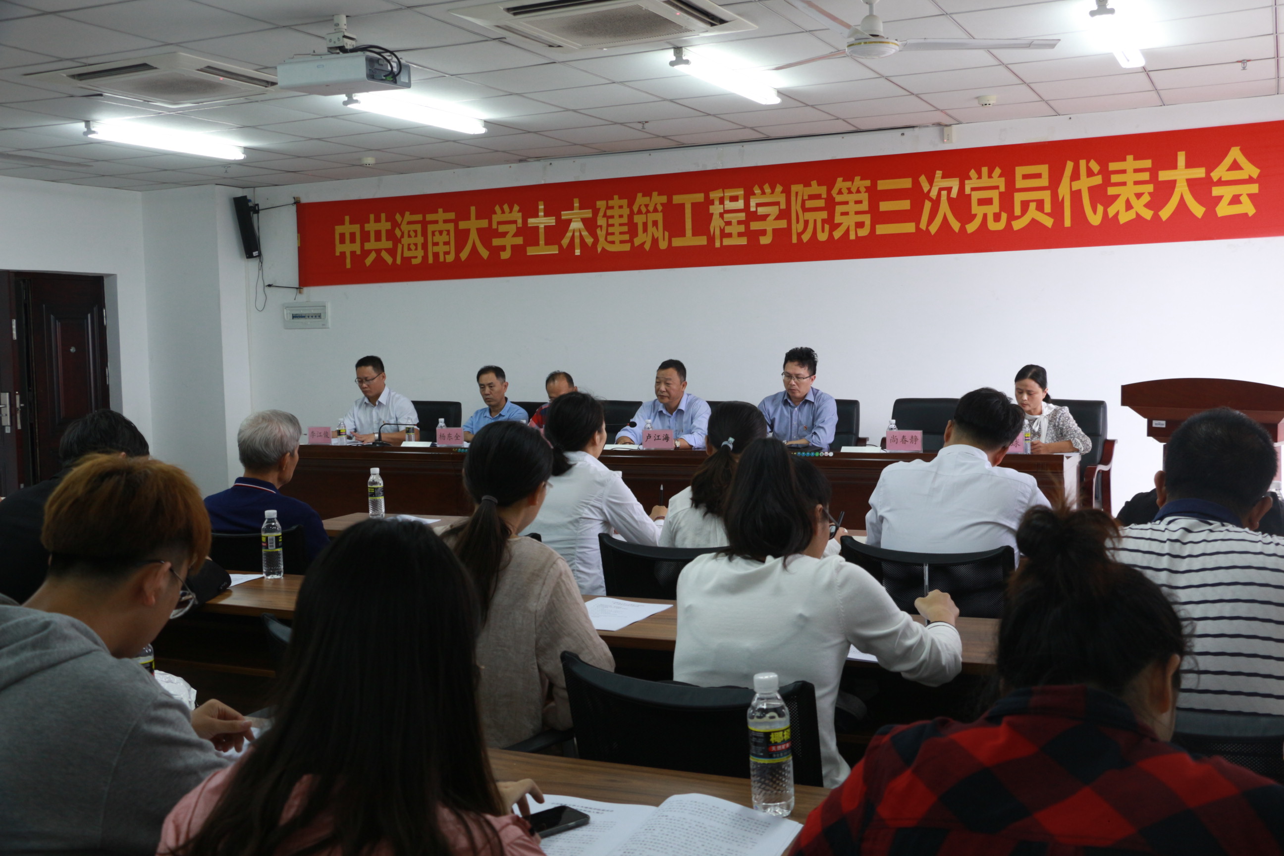 在悠扬的国歌声中,大会拉开帷幕。随后,公司党委书记以“以习近平新时代中国特色社会主义思想为指引立德树人,为创建一流土木学科而努力奋斗”为主题发表了会议报告。报告中,卢书记从办学规模和质量,办学基础条件、学科专业建设、科研创新、党建工作等多个方面详细综合地描述了公司近四年来的发展与突破,并对全院师生员工表示衷心的感谢,并对公司工作中的不足提出改进要求及希望。随后,就当前公司面临的重大发展机遇和严峻挑战,卢书记提出“促进海南和南海经济社会发展为人才培养和团队建设的目标”,以传统土木工程相关学科为基础,向海洋土木工程领域发展,打造具有热带、岛屿和海洋特色鲜明的一流学科。在未来4-5年内实现将必一运动建设成为以土木工程和海洋工程学科为主、建筑学和工程管理等多学科协调发展,具有“海洋”特色的,在国内具有一定影响的教学研究型公司的总体目标,并对团队建设和办学规模、团队队伍建设、人才培养、教学科研成果、教学科研基础条件五大方面提出了具体要求。