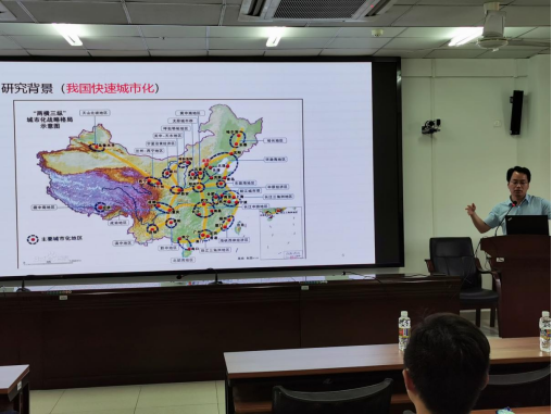 首先,李教授讲述了这个课题的研究背景,我国城镇化的快速发展促使了“两横三纵”城市化格局的形成,而在城市化进程不断加快的同时产生了一系列问题,智慧城市与韧性城市就是为了解决这些问题而探索出的解决方案。