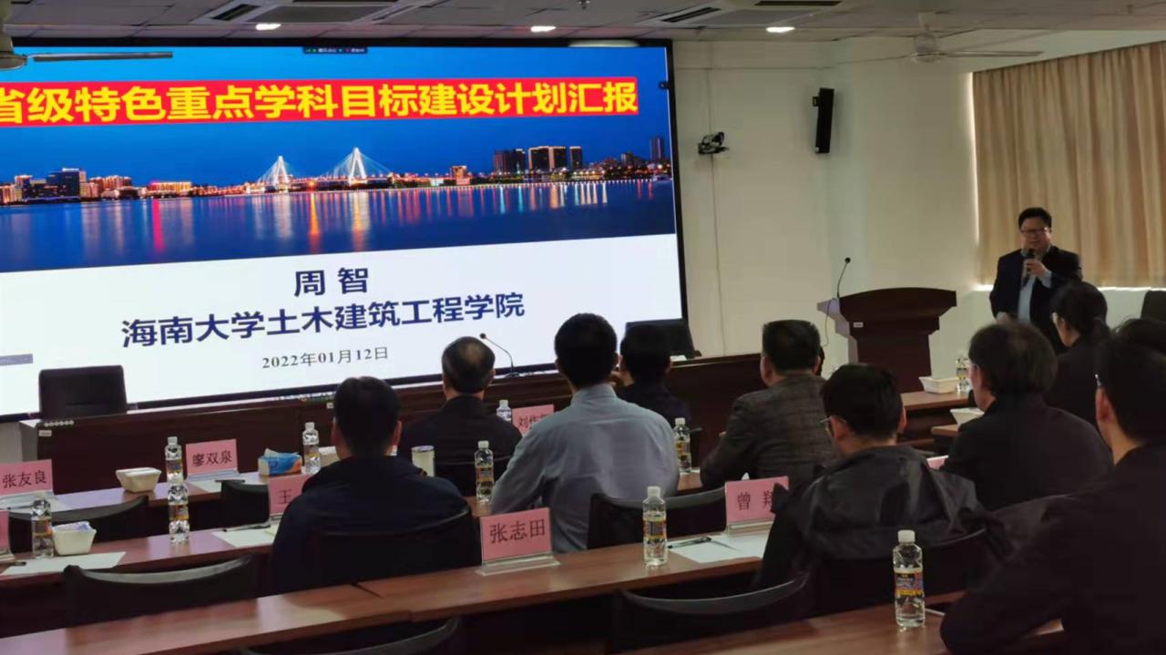 2022年1月12日下午,bsports必一登录入口土木工程省级特色重点学科目标建设评审会在海口市bsports必一登录入口海甸校区研发楼510会议室举行。以中国工程院院士欧进萍教授为组长,日本工程院外籍院士董勤喜教授、日本工程院外籍院士陈飞勇教授、海南省科技厅刘作凯副厅长、海南省住房和城乡建设厅刘联伟副厅长、bsports必一登录入口科技处邹勇华处长、bsports必一登录入口发展规划处赵治乐副处长为成员的专家组出席会议。会议由土木建筑工程公司经理周智教授主持,会议采取线上和线下结合的方式进行。海南大学研究生处处长廖双泉,公司副经理张友良、邱宙廷、田元福,党委副书记孙晓媛,教授韩建刚、曹宝珠、杨东全、刘婉秋、王辉、任兴月等老师参加了会议。