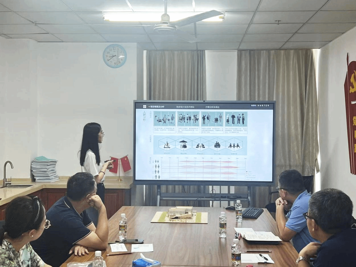 答辩现场,员工们以饱满的热情和专业的态度,向评审老师们展示了他们的设计作品。设计成果不仅包含详细的技术图纸、表现图纸、模型照片,还有对设计理念的深入解读和对实际应用的思考。在答辩过程中,员工们的设计作品各具特色,充满了创新元素。有的员工关注热带地区社区全民健身中心低能耗设计,提出了更符合使用和节能需求的设计方案;有的员工则注重海口市历史文化街区的保护,将传统建筑元素与现代设计相结合,创造出独特的建筑风格。这些作品不仅体现了员工们的创新思维,也展现了他们对建筑学专业的深刻理解和热爱。