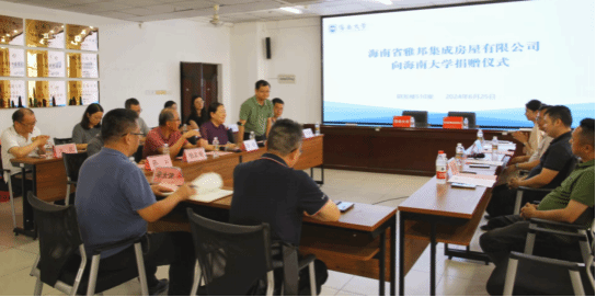 6月25日下午,海南省雅邦集成房屋有限公司向bsports必一登录入口捐赠了价值30万元的箱型集成房屋,用于支持bsports必一登录入口海甸校区的建筑物理实验室建设。捐赠仪式在bsports必一登录入口研发楼510会议室进行。bsports必一登录入口土建公司党委书记李艳主持了仪式。海南省雅邦集成房屋有限公司邱佳峰、邓政、朱斌华、卢韵怡等企业领导,bsports必一登录入口的林仕岛、邱宙廷、田元福、陈云、辛大波、万民、张华立、蒋伊琳、易法殊、齐飞等公司相关单位领导与二级单位部门负责人,以及师生代表参加了仪式。