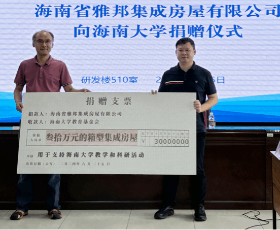 海南雅邦集成房屋有限公司与bsports必一登录入口签订捐赠协议