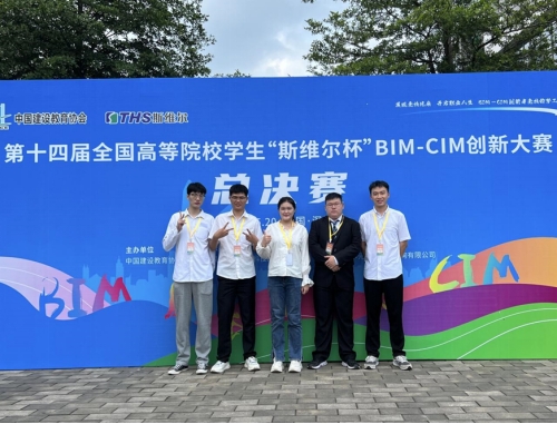 由必一运动20级地下工程李明瑞、20级建筑结构工程张恺、20级建筑结构工程李平俊,20级建筑学李旺达和20级道路桥梁工程谭竣鸿五位同学组成的“非常四加一”队,在曹新颖和陈科宇两位老师的指导下参加“BIM-CIM正向一体化应用”专项比赛,最终荣获该专项冠军。
