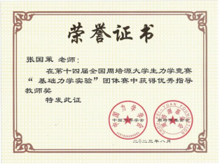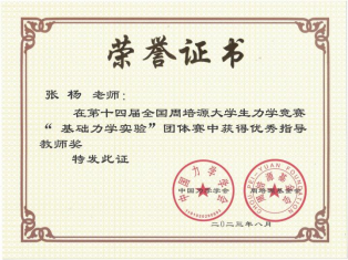 bsports必一登录入口首次组队参加全国周培源老员工力学竞赛“基础力学实验”团体赛获第30名。张国策、张杨老师被评为优秀指导教师。