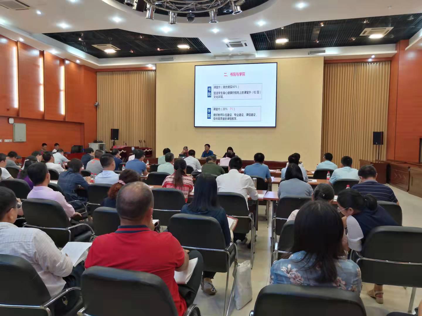 随后,教务处邱锡光处长从专业群组分类、课程体系优化、配套制度完善、支持系统改善、推进步骤设置等五个方面介绍了完全学分制改革的技术路线。员工工作部(员工工作处、人民武装部)刘雨芙部(处)长就完全学分制及书院制改革对员工工作的全新机遇和要求进行了发言。